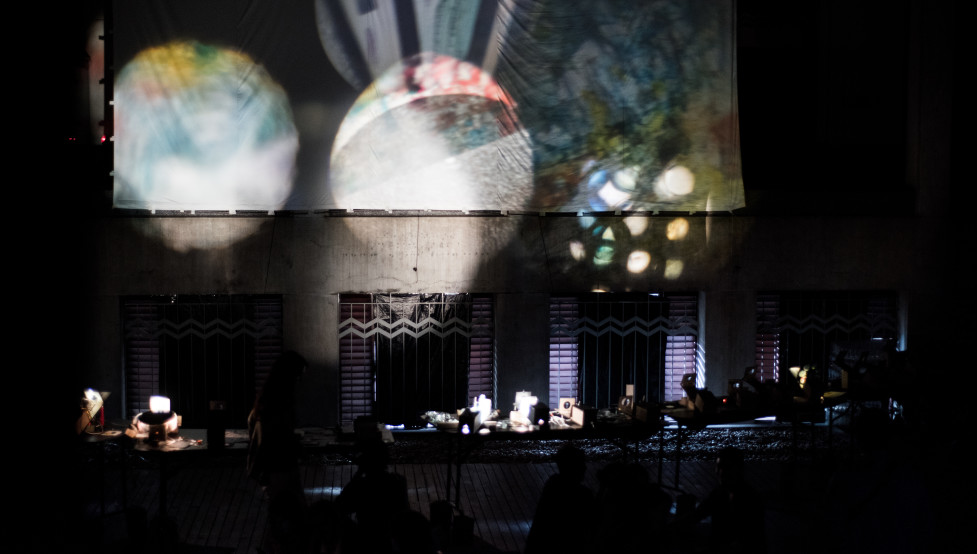 Como parte del Festival Fotosíntesis y la conmemoración Año Internacional de la Luz, proyecto de la Universidad de Antioquia que hace parte del MDE Expandido, se realizó el pasado 13 de noviembre la sesión de cine en vivo con el Colectivo Luz y Fuerza, y los estudiantes del taller Cine hecho a mano que se desarrolló en asocio con el Colaboratorio del Parque Explora. En esta proyección de cine en vivo, 20 personas con proyectores caseros contaban un relato a través de diversas figuras que se veían en las paredes del patio sur del Museo de Antioquia acompañados de música en vivo.